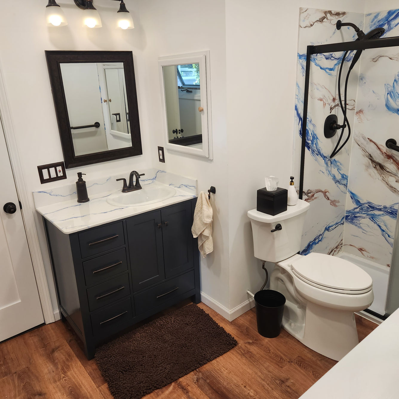 When we arrive, we will begin to remove any existing walls, tub/pan, shelfs, shower doors, etc. Some variables such as tile removal, green board replacement, rotted floor, plumbing issues, etc., may add additional days for preparation.